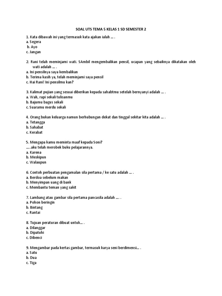 Soal Uts Tematik Kelas 1 Tema 5 Subtema 3 Semester 2 Genap 2017 Soalbagus Com from 3.bp.blogspot.com Soal uts kelas 1 tema 5. Maybe you would like to learn more about one of these? We did not find results for: Check spelling or type a new query.