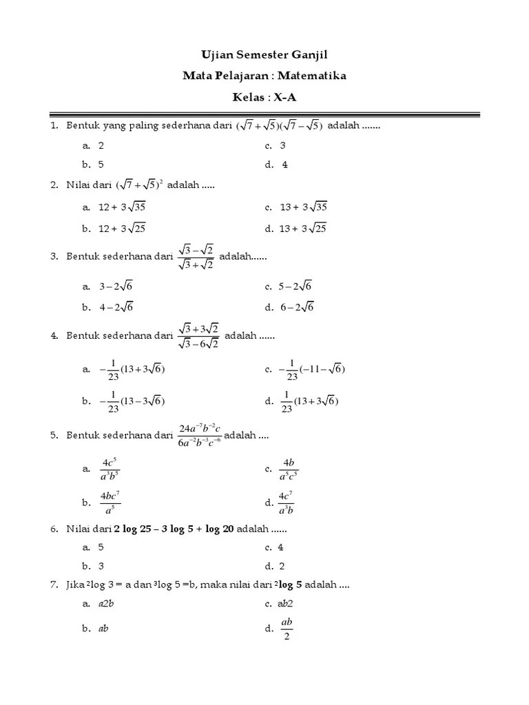 Kumpulan soal matematika wajib kelas 10 semester 1 dan pembahasannya pdf kumpulan soal.